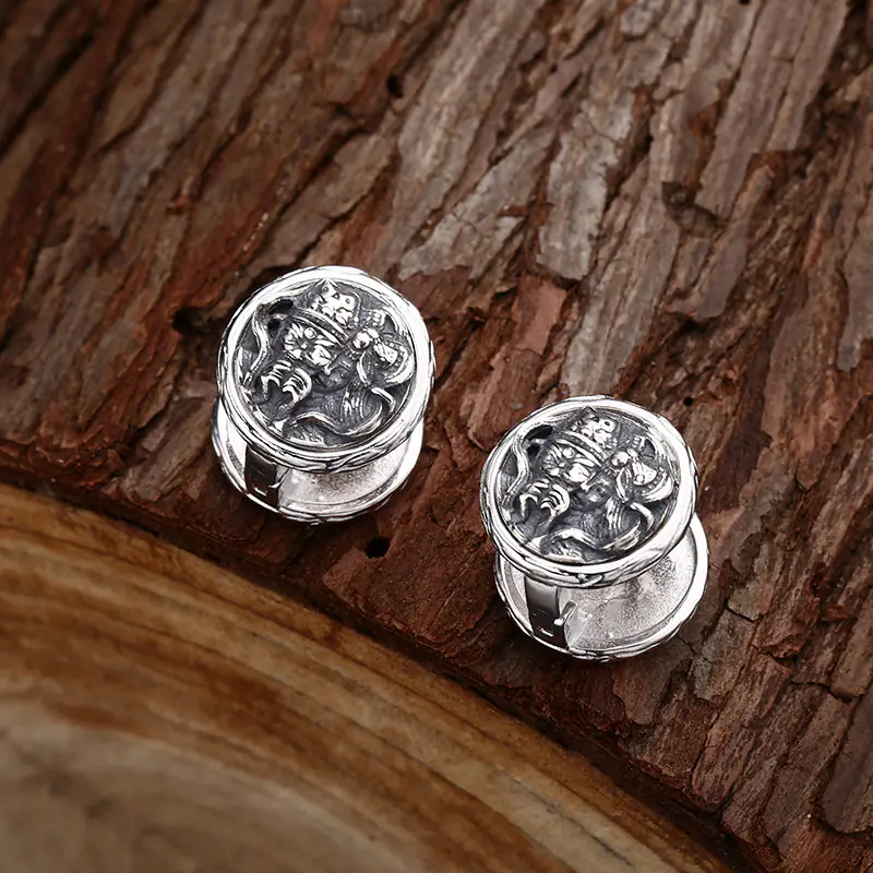 Silver Stud Earrings Heart Ears of Wheat Textures Vintage Style 235